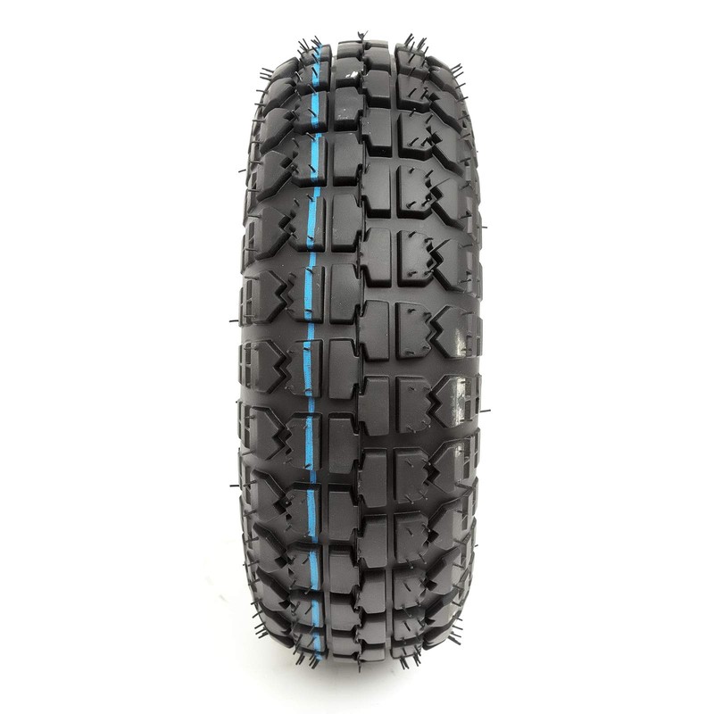 - SPECIFICATIONS: Tyre Size/4.10 / 3.50 - 4/Tyre Outer Diameter/254 mm / 10 inches/Tyre Ply/4/Tread Pattern / Type/Off Road Knobbly/Profile/70 mm / 2.76 inches/Maximum Load/160 kg/Diameter of Central Hole/101.5 mm / 4 inches/Tread Depth/5 mm / 0.2 inches/Tyre Width/87.2 mm / 3.43 inches