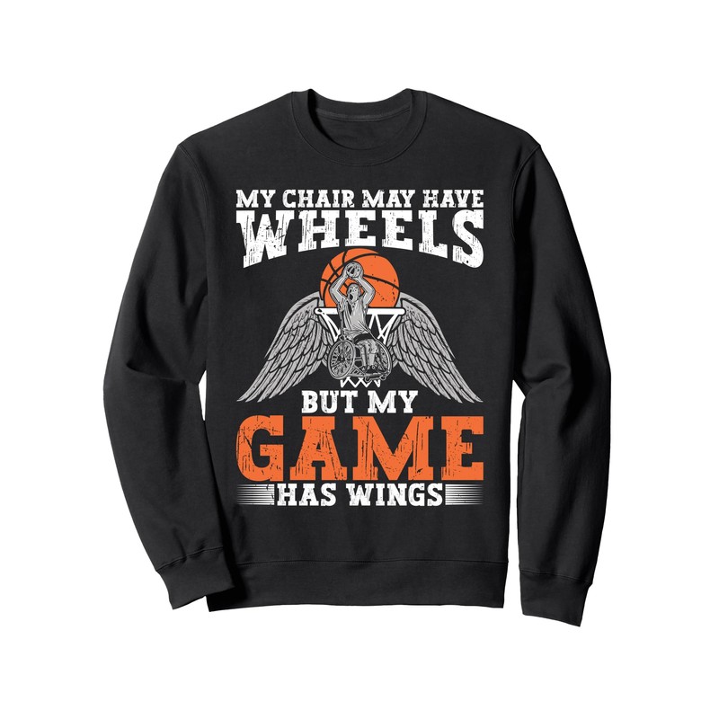 - Featuring the quote: "My chair may have wheels, but my game has wings.". Show your passion for wheelchair basketball with this unique design. Perfect for anyone who loves disability sports and competitive basketball.