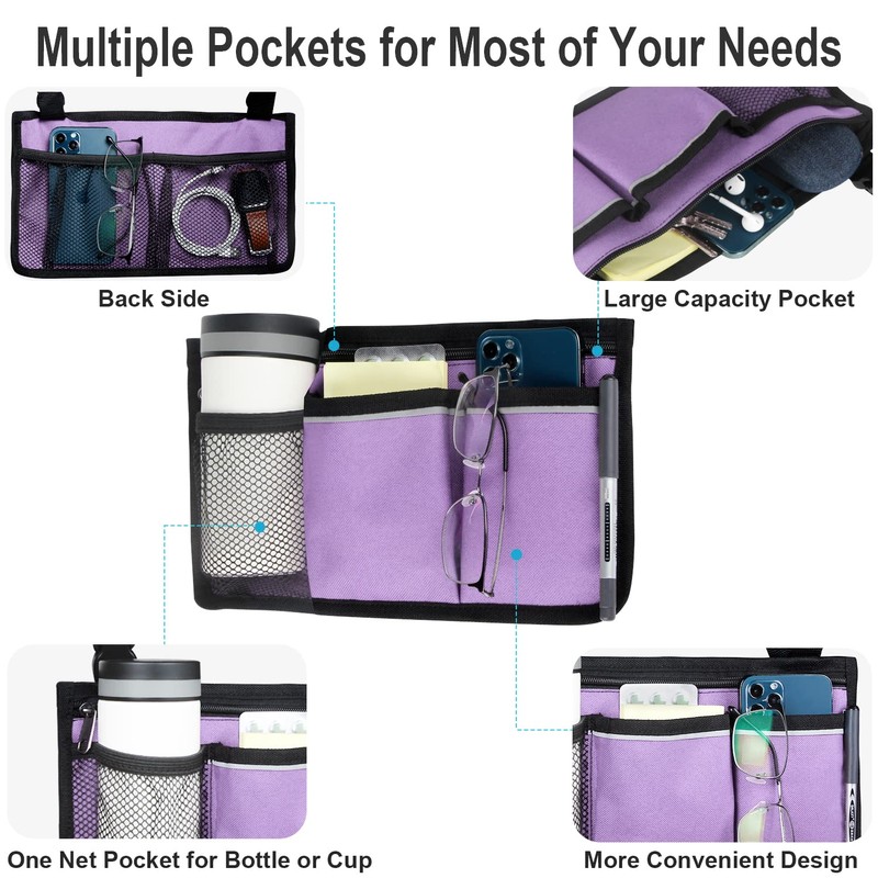 - ✔ Durable for Long Time to Use: This armrest side bag is made of Super Abrasion Resistant High Quality Waterproof Fabric. You can attach and remove the storage bag easily with the durable adjustable straps for last a longtime using.