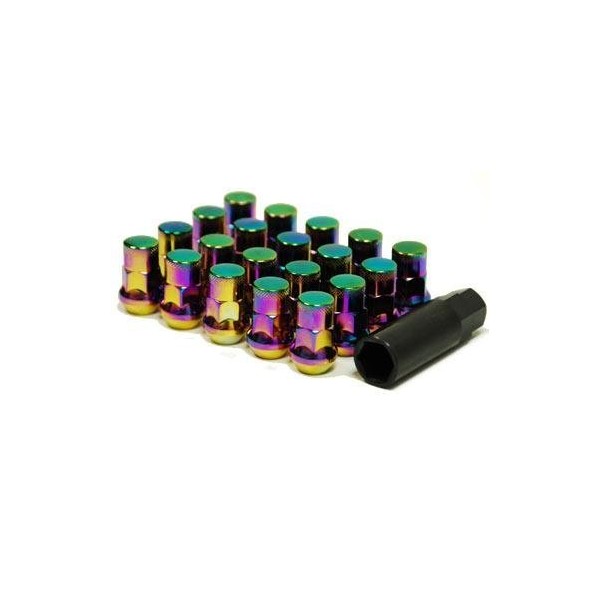 Muteki SR48 Lug NutsOpen EndSet of 4The latest lug nuts from Japan, the Kics Project MutekiSR48 Lug Nuts come in a set of 20 with key adapter.Manufactured from chrome vanadium, each lug weighs in at a mere 2oz! Kics Project Muteki SR48 Lug Nuts are available inopen ended designs, making them easily adaptable for short orextended wheel studs.Super light-weight thin-wall construction using strongCHROME VANADIUM 28DCRVMSPEC.Oversized and taper seat to ensure best contact.External drive by popular 17mm hex for easierinstallation.Knurled tips for better grip.Full stud engagement and can accommodate long racingstuds.Reliable and stronger than aluminum racing lug nuts.