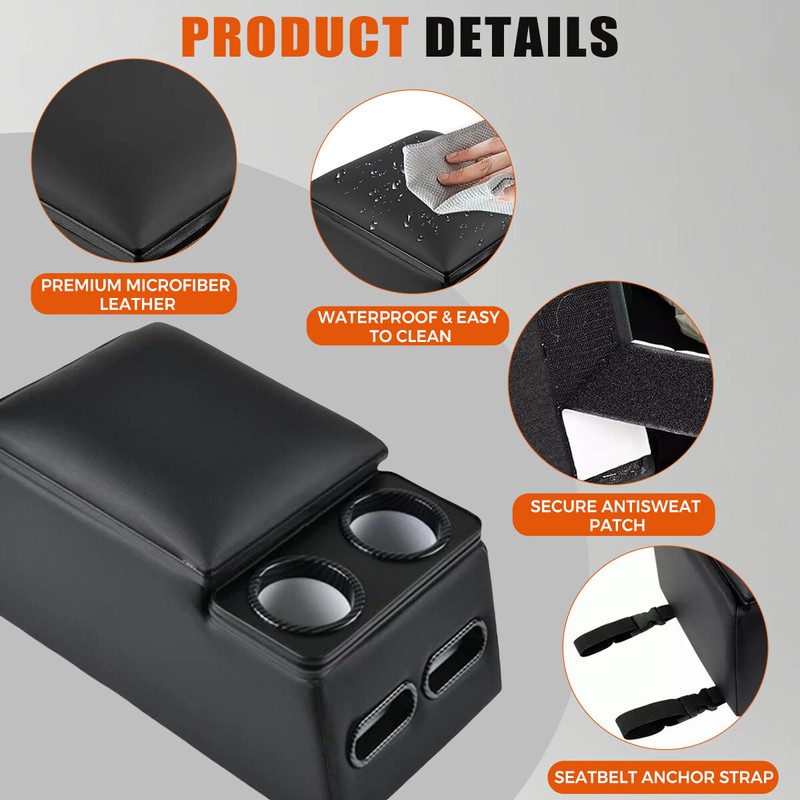 WheelX Center Console Armrest Organizer w/Phone & Cup Holder for Car/Minivan/Va