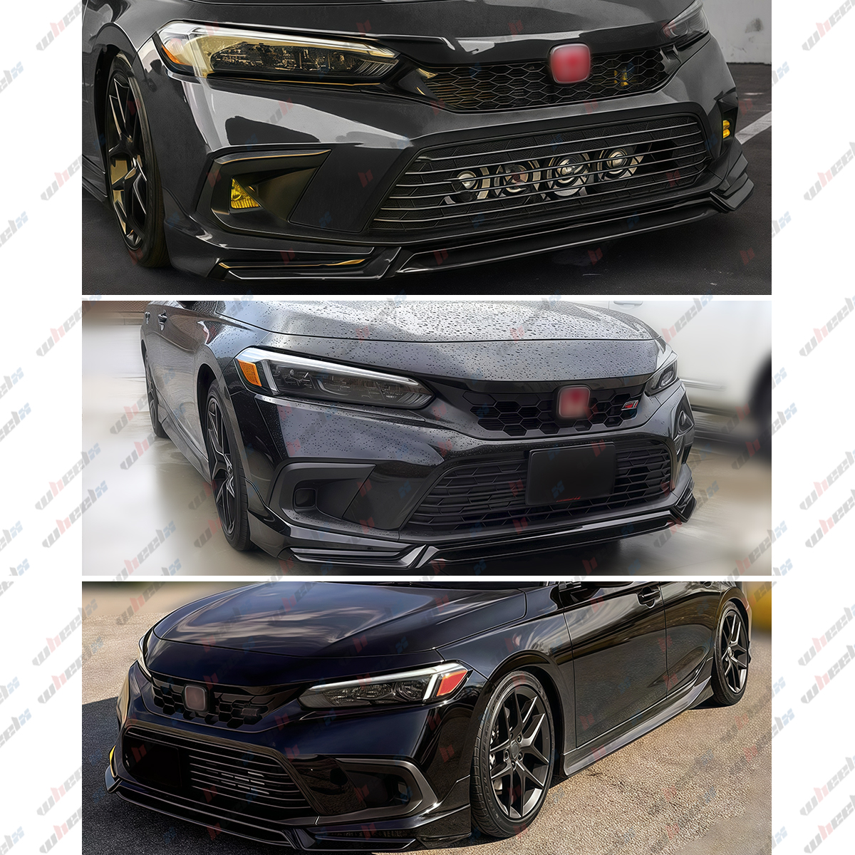 WheelX For 2022-24 Honda 11th Civic Yofer V3 Glossy Black Front Bumper Lip Splitter Kit