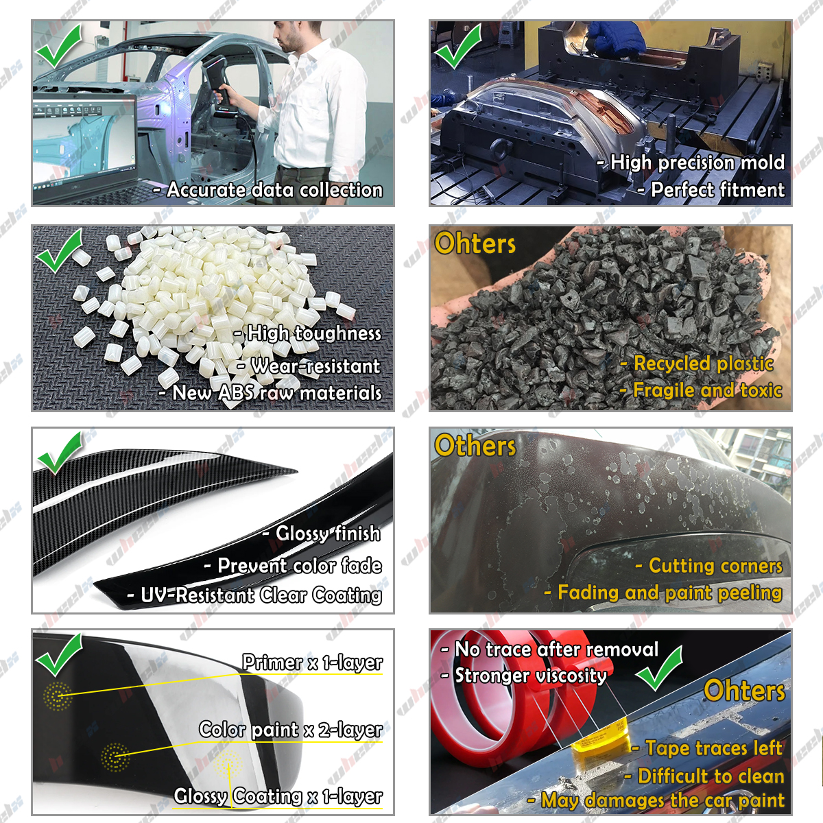 - Package Included: 1 x Rear Spoiler; 1x Double Sided Tape