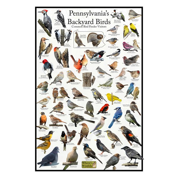Where's Wildlife Pennsylvania's Backyard Birds Poster - Pennsylvania Bird Chart Highlighting Birds At Your Bird Feeder (8" x 12")