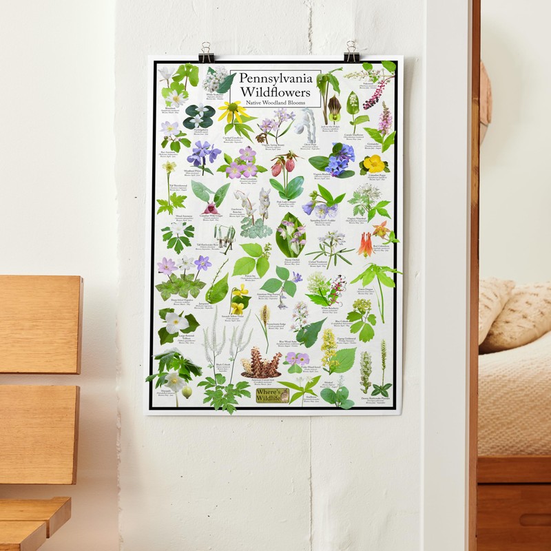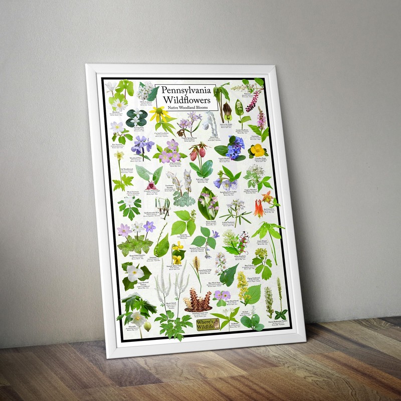 Where's Wildlife Pennsylvania Wildflowers - Native Woodland Blooms Poster | Educational Science Chart of Pennsylvania's Woodland Flowers (16" x 24")