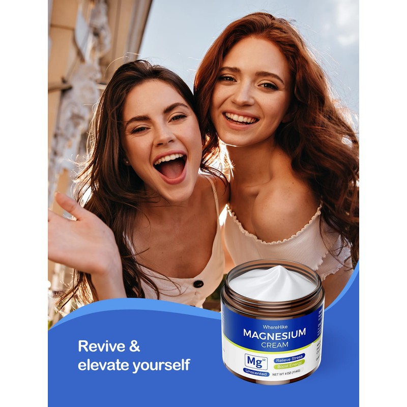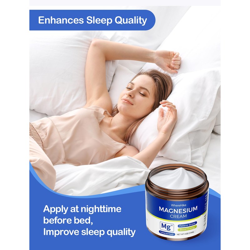 WhereHike Natural Topical Magnesium Cream for Sleep,Nighttime Magnesium Lotion for Pain and Leg Cramps,Muscle Relaxation,Calm,Deep Hydration for Skin Care.(Unscented)