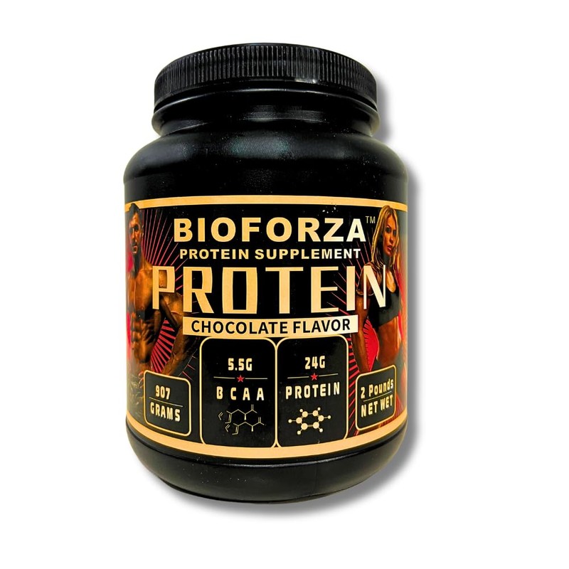 BioForza Whey Protein Powder Chocolate Flavor, 24g Protein, 5.5g BCAA, 2 lbs (907g). BioForza Whey Protein Powder is a premium supplement designed for athletes, bodybuilders and anyone looking for a high-quality protein source for muscle growth and recovery. Each serving delivers 24g of fast absorbing whey protein and 5.5g of naturally occurring BCAAs, essential for lean muscle mass development and reducing post-workout fatigue. Our formula is free of gluten, soy and artificial colors making it an excellent choice for those looking for clean, effective nutrition. With a delicious chocolate flavor and lump free instant mix, BioForza is ideal for post-workout shakes or as a daily protein supplement. How to use: Mix 1 scoop with 8 to10 oz of water or milk. Ideal for consumption after training or at any time of the day. BioForza offers fast-absorbing whey protein for improved muscle recovery and a high BCAA content to optimize athletic performance. Its creamy texture and easy dissolution make it a convenient and delicious option. This supplement is perfect for athletes, fitness enthusiasts and anyone who needs a reliable source of protein to support their nutrition and training.