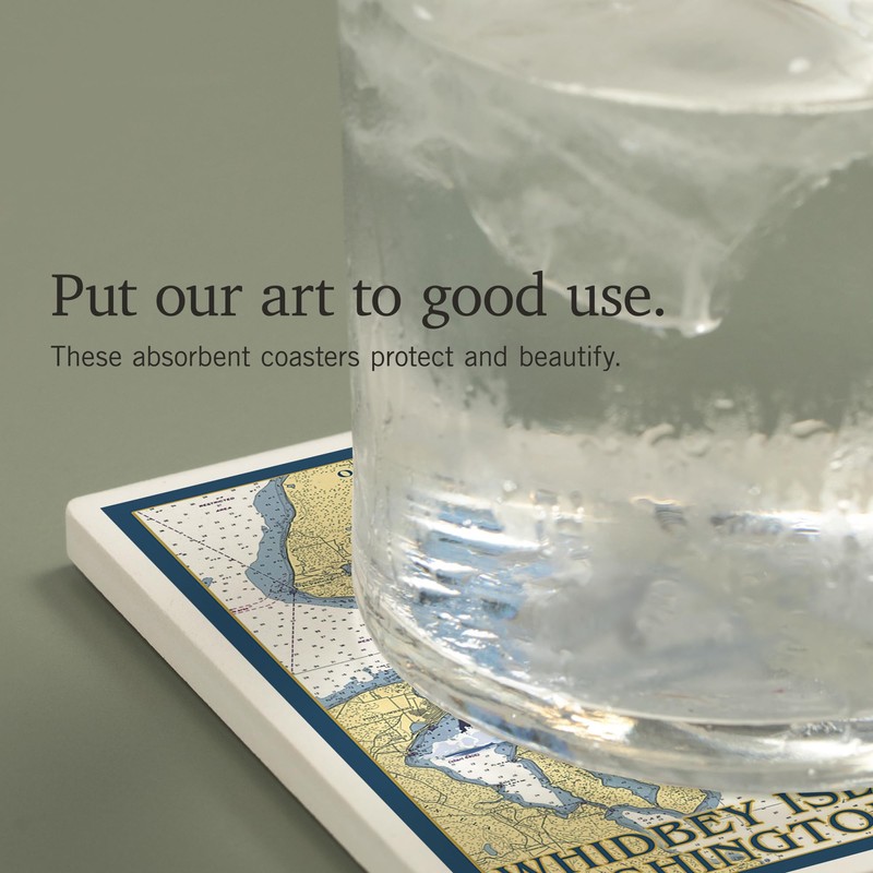 Whidbey Island, Washington, Nautical Chart (Absorbent Ceramic Coasters Set of 4 Matching Images, Cork Back, Kitchen Table Decor)
