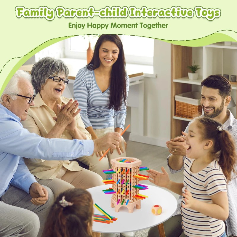 Premium Natural Materials – Made from high-quality beech wood with non-toxic, child-safe paint for vibrant colors and long-lasting durability. The wooden sticks are designed for easy gripping, and the smooth, polished tower ensures safe play with no sharp edges.