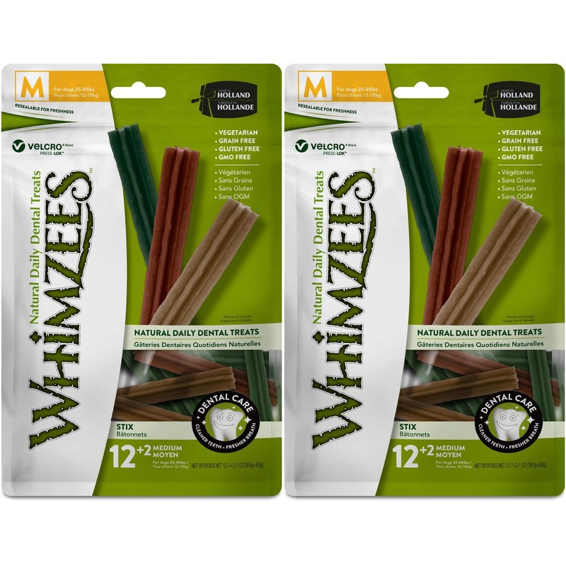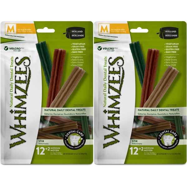 Whimzees Natural Dental Care Stix Dog Treats Medium - 14 Pack - (Dogs 25-40 lbs) - Pack of 2