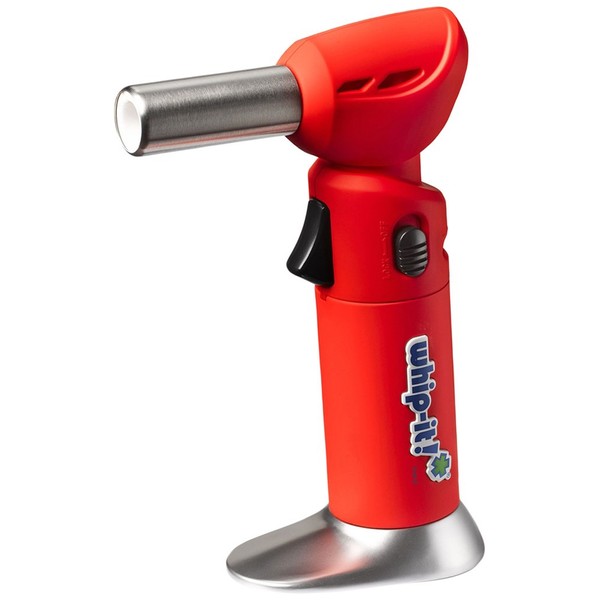 The Whip-it! flex Torch silver features a unique flame nozzle that rotates in three different angles (0 Degree, 45 Degree, and 90 Degree) for a variety of applications at home or professionally. Its piezoelectric ignition technology coupled with a precision flame tip delivers unparalleled power and five-star performance. The flex Torch is available in a collection of colors and includes a carrying case and recipes booklet.