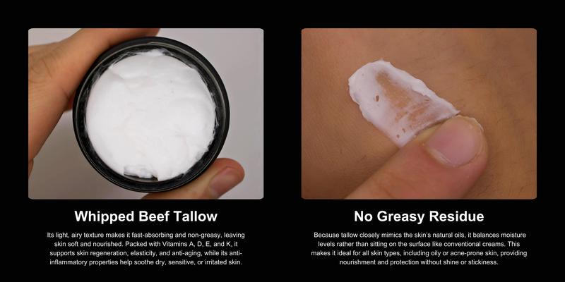 • INTENSE MOISTURE- Crafted for the modern man, our beef tallow cream delivers deep, long-lasting hydration. Just one application locks in moisture, keeping your skin soft, supple, and refreshed throughout the day. Say goodbye to dryness and hello to a healthy, youthful glow.