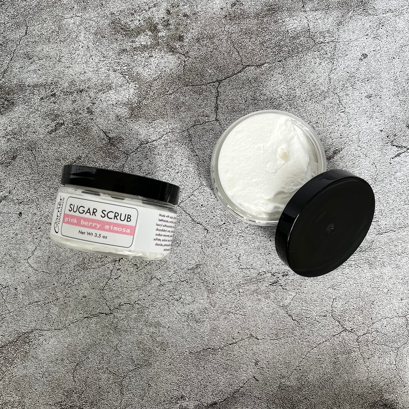 Whipped Soap and Sugar Scrub, Hand and Body Scrub, Gently Exfoliate Your Skin (Pink Berry Mimosa)