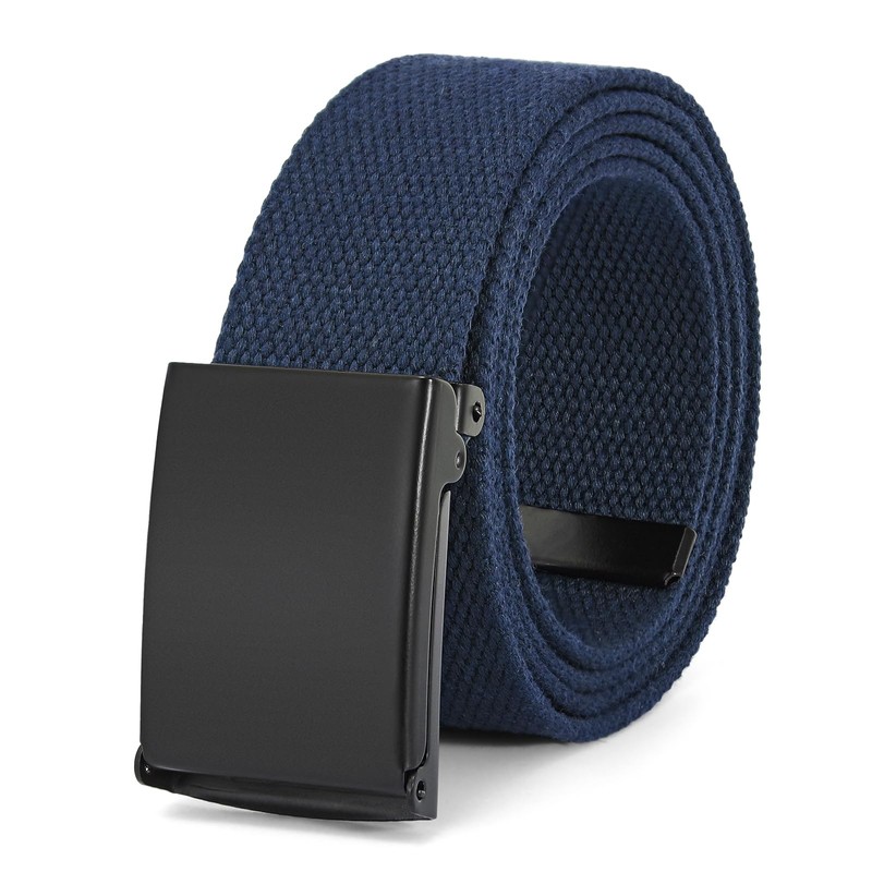 WHIPPY Canvas Web Belt Flip-Top Solid Black Military Buckle Fully Adjustable Mens Webbing Belts Cut To Fit Navy Blue S