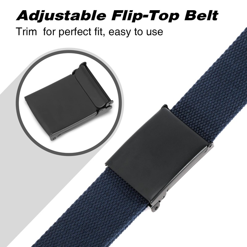 - ❤Flip-Top Buckle - Features a flip top military style buckle that holds tight and stays secure, even better. The polished black finish is smooth and stylish. Press on lock design, these canvas belt for men can be easily clamped and adjusted to any tightness.