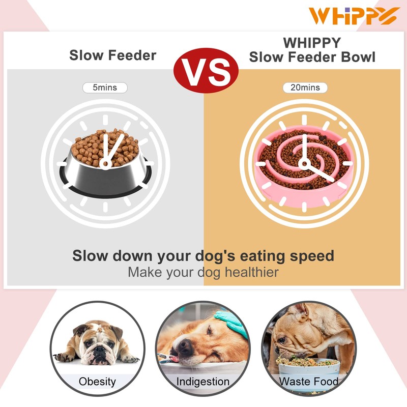 - 【PROMOTES FUN & HEALTHY DIET】WHIPPY slow food dog bowl is made of food-grade safe materials. The fun dog feeder puzzle bowl promote healthy eating, spiral pattern design can slow down rapid eating and stop choking, adjust pet weight, prolonging meal time prevent indigestion, interactive and fun slow feeder. Eat slower eat healthier.