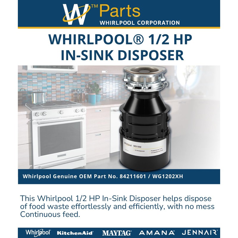 Whirlpool 84211601 1/2 HP in-Sink Food Disposer, Black