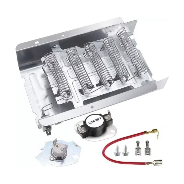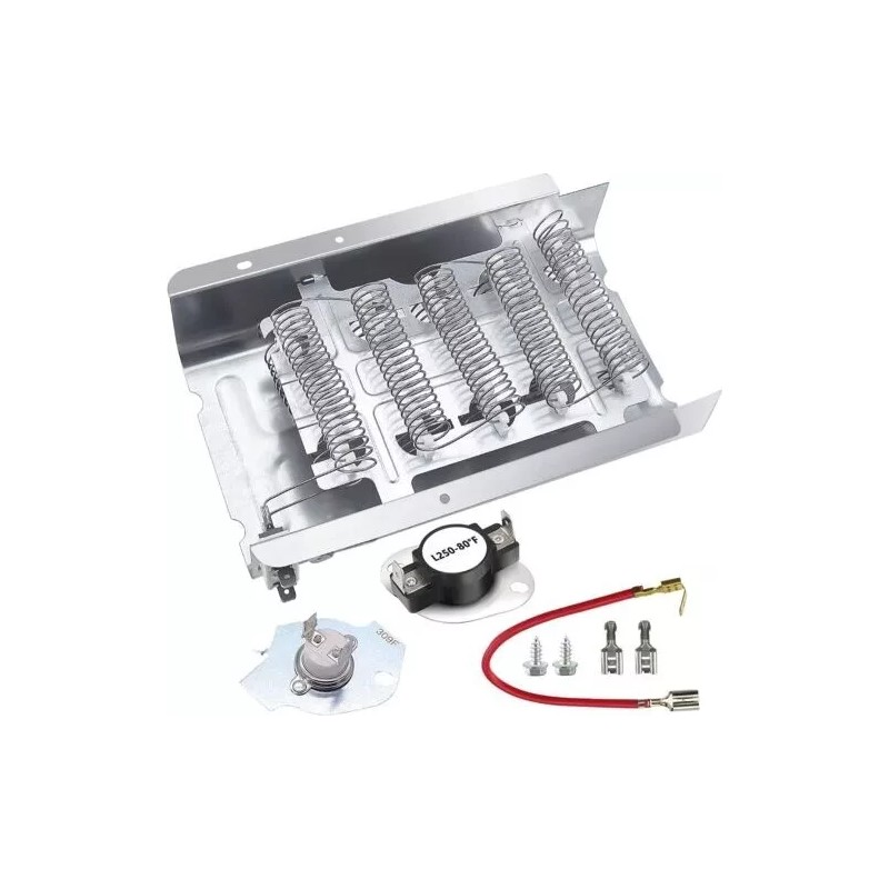 ✅【UPGRADED QUALITY】:279838 Dryer Heating Element Kit is made of high quality nickel-chromium. Dryer heating element 279838 nickel chromium content reaches 85% , nickel wire is 0.052in thick ,and the length of the heating wire is 30% longer than other common dryer replacement parts -last long time. The dryer heating element includes a heating coil and 279816 dryer thermal cut-off kit.279816 dryer thermostat kit replacement cut off current to avoid overheating.