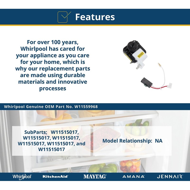 • COMPATIBLE APPLIANCES: W11559968 is compatible with select Whirlpool refrigerators