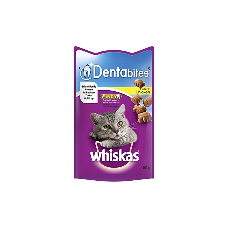 WHISKAS Dentabites Cat Dental Treats for Oral Care, Reduce Build up and Help Control Tartar with Delicious Chicken, 8 x 50 g.