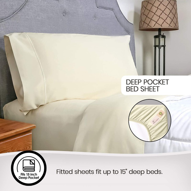 Whisper Organics, 100% Organic Cotton Sheet Set - 500 TC Bed Sheets Set (Bed Sheet + Flat Sheet + Pillowcase) - Extra Deep Sheets Set - GOTS Certified (Natural, Twin XL)