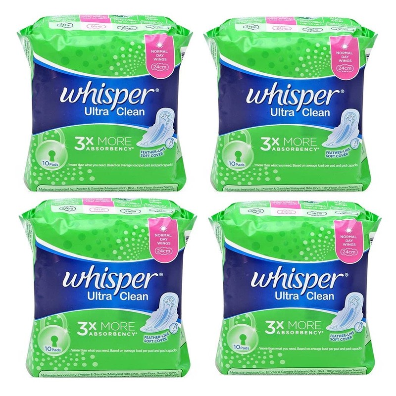 - 4 x 10pk Whisper Ultra Clean 3X More Absorbency