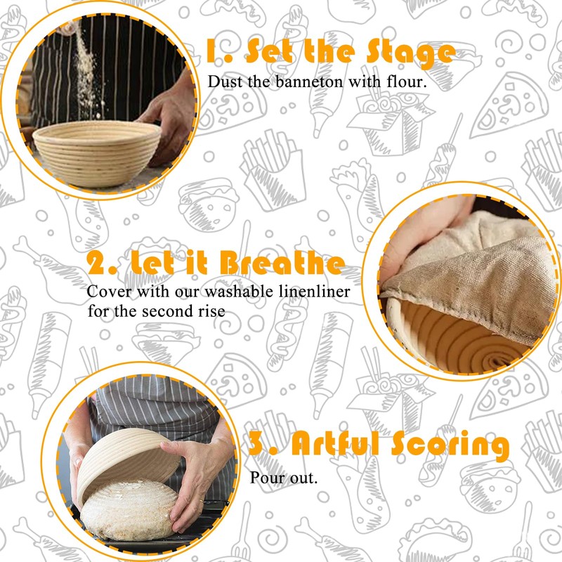 - 【EASY TO CLEAN】This bread proofing basket is easy to clean and maintain, simply rinse with water or use a brush to clean any remaining flour once it dries. Sourdough banneton basket's natural look makes it a beautiful addition to any kitchen decor, whether you're a seasoned pro or just starting out with your baking journey.