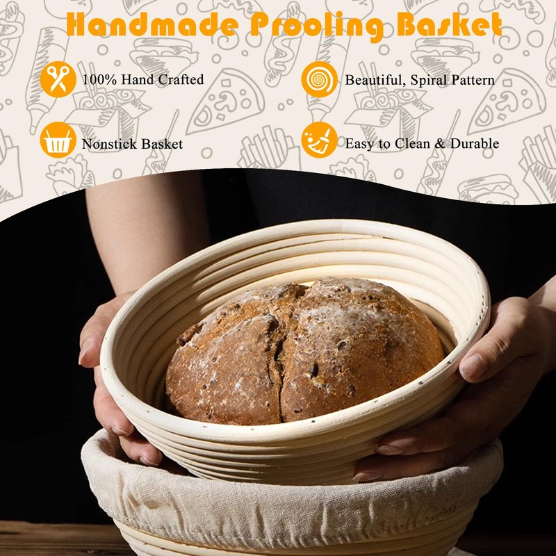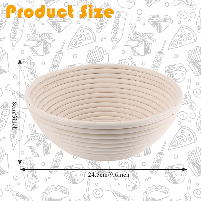 - 【ROUND RATTAN BANNETON BASKET】The banneton basket is the perfect tool for any bread baker. Made from natural rattan, without any glue or chemicals, it's both safe and sturdy. Measuring 9.6 inches in diameter and 3 inches in height, banneton bread proofing basket is the ideal size for most bread recipes.