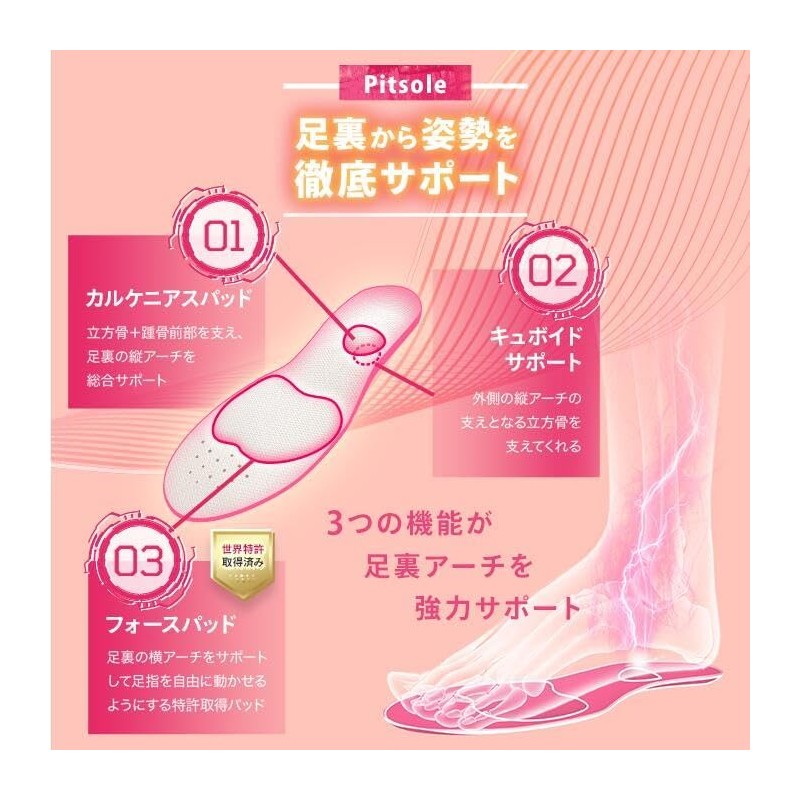 [White 2-Pair Set] 6% discount from 1 pair / Pit sole, Insole, Beautiful Legs, Posture Support, Beautiful Posture Insole, Unisex, Standing Work, Stress Reduction, Arch Support, Size Adjustment,