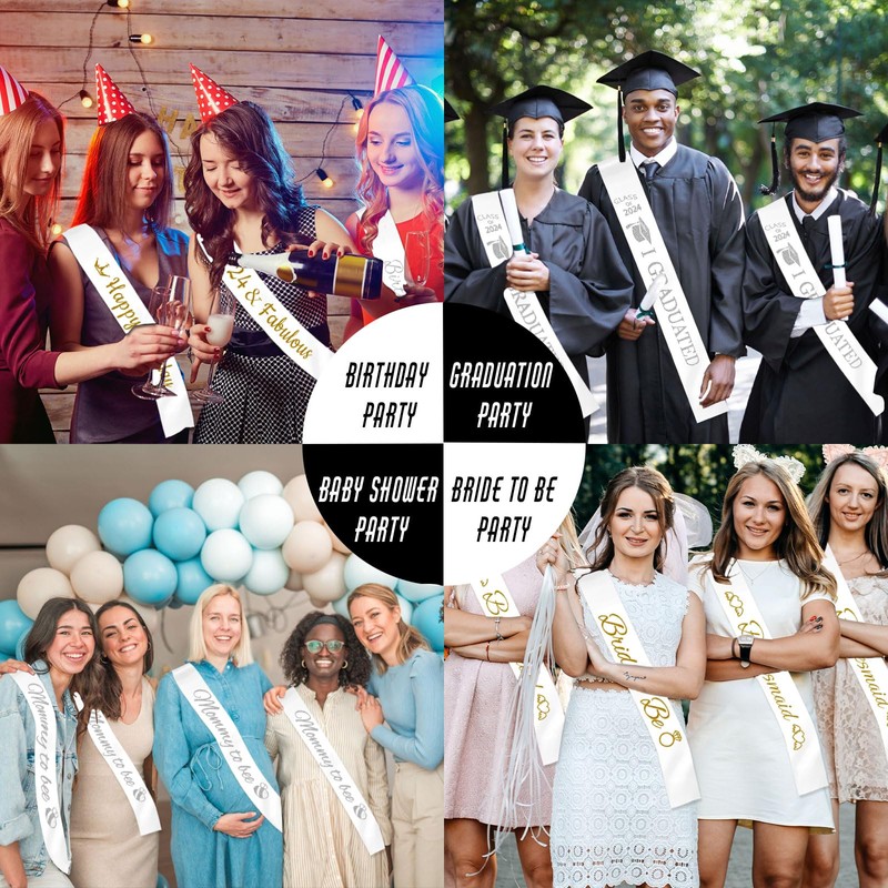 • 🎉User-Friendly: No need for sewing skills – simply use the included pens to personalize your sashes effortlessly.