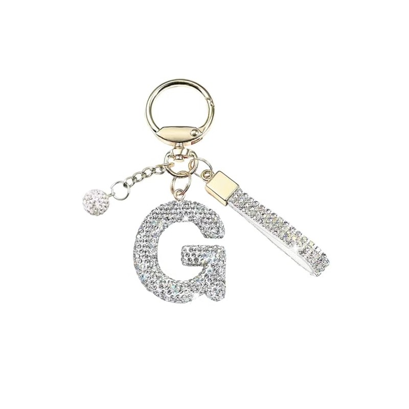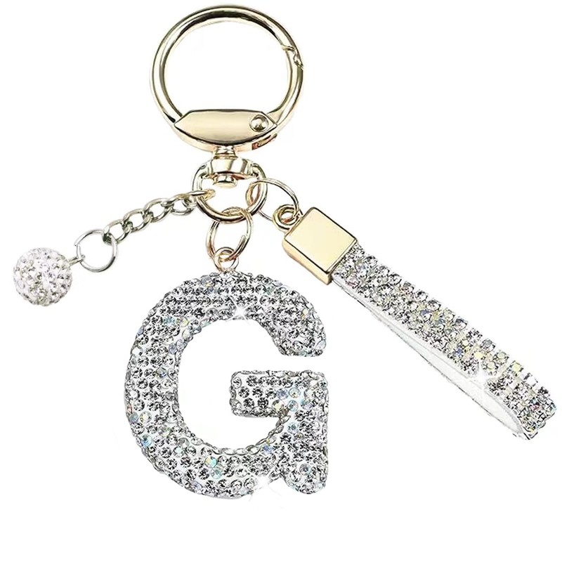 White A-Z Initials Letter Keychain Bling Sparkly Cute Pendant for Wallet Backpack Handbags Women,Letter G