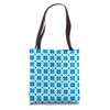 White Azure Blue Chained Rounded Squares Coastal Pattern Tote Bag