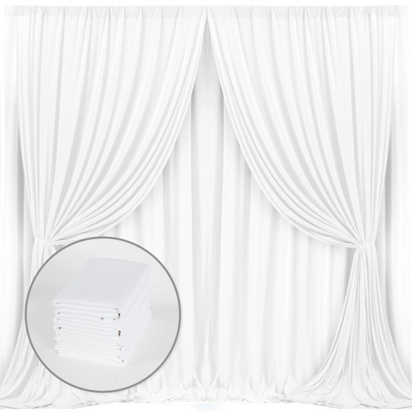 White Backdrop Curtain for Wedding Decor Holiday Party 4 Panels- White Wedding Backdrop Polyester Photography Backdrop Drapes Baby Shower Birthday Privacy Sliding Curtains Home Decor,5ft x 10ft