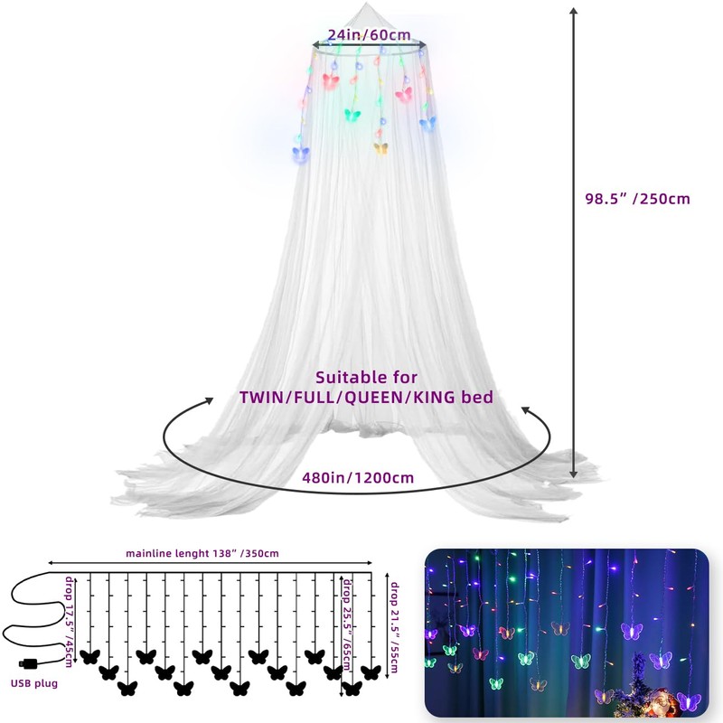 | Color: | White Bed Canopy W/ Drop Rainbow Butterfly Light |
