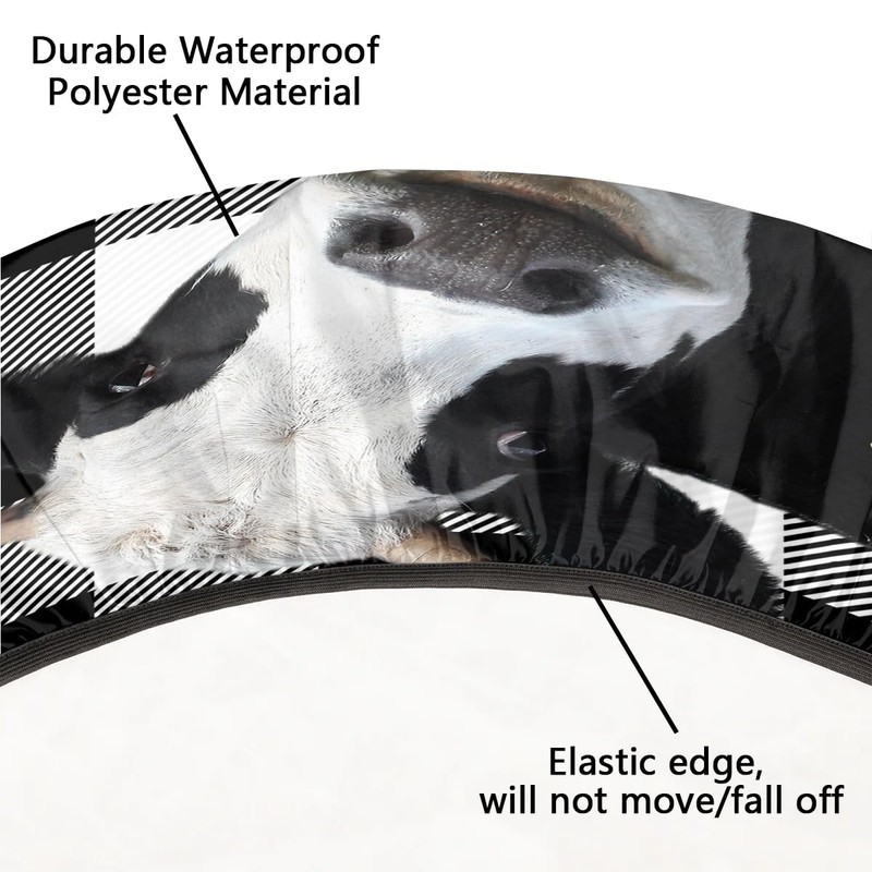 White Black Buffalo Cow Sunflower Fitted Tablecloth Round with Elastic Edged, Tartan Checker Waterproof Wipe Clean Table Cover for Outdoor Indoor Patio Kitchen - Fits Tables 36" to 42" Diameter