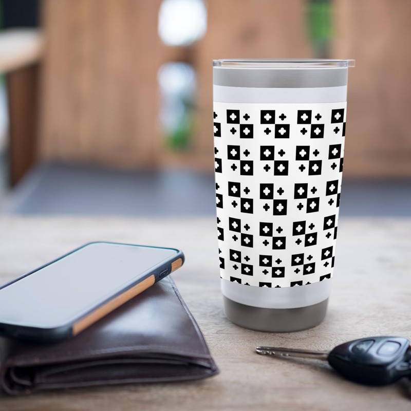 White Black Cross Rectangle Checkerboard Historical Pattern Stainless Steel Insulated Tumbler