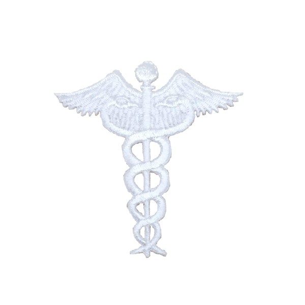 White Caduceus - Medical/Nursing - Embroidered Iron on Patch