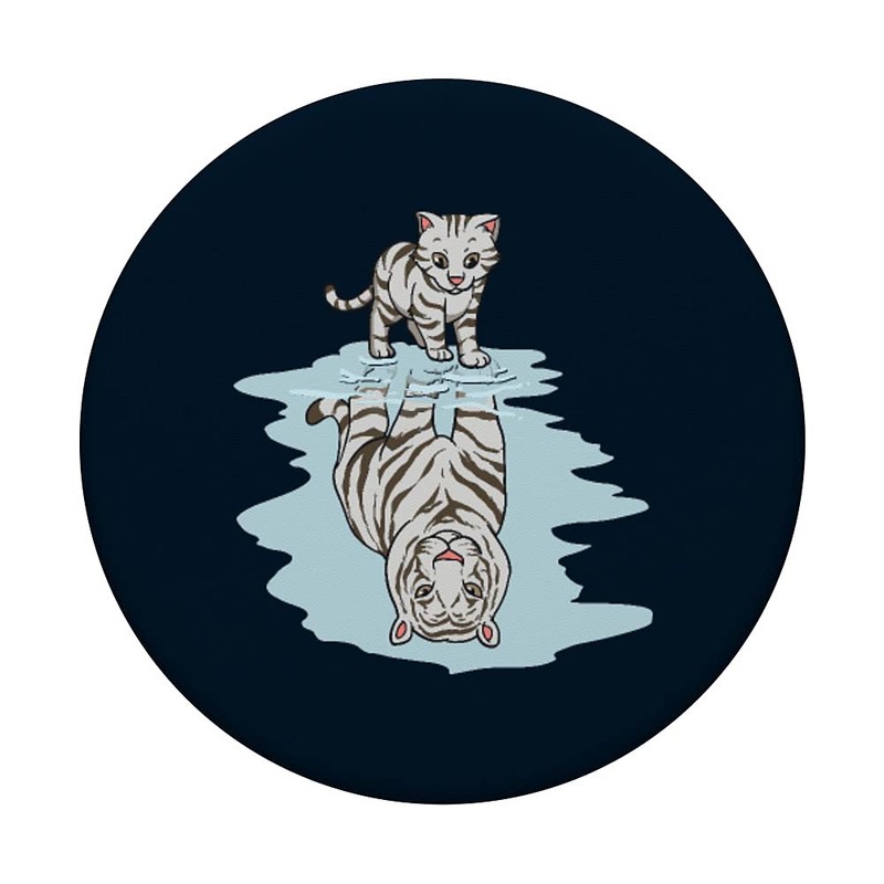 White Cat In Mirror Reflection Tiger Kitty Baby Cat Kawaii PopSockets Swappable PopGrip