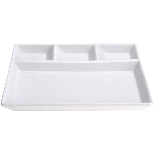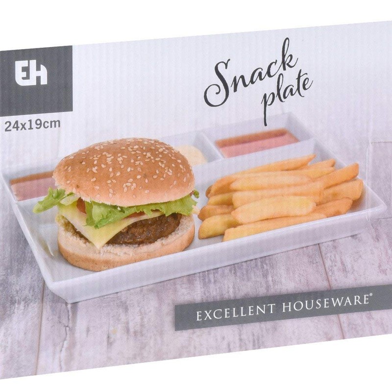 Set - Serving Plates for serving snacks and sauces, the plate has four rooms fenced in solid ceramic, trendy colours - in a shade of smooth, snow-white white, sensational gift idea for any occasion, a renowned EH Excellent Houseware, Dimensions: 24 x 19 cm.