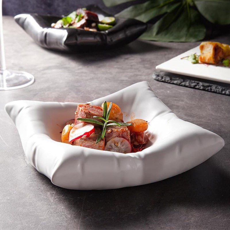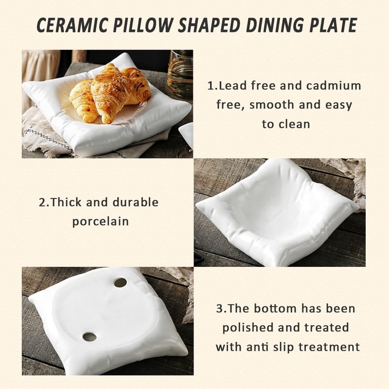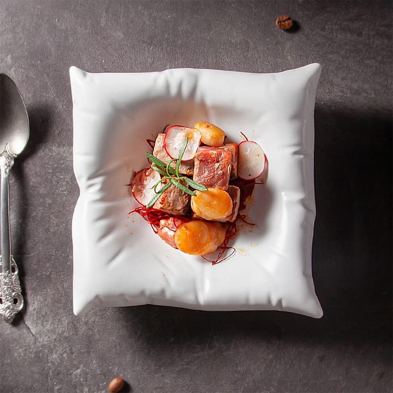 - Unique and Elegant Design: The white ceramic pillow plate, with a novel design, vividly restores the sunken scene of a white square pillow. The white clean and simple design makes people's eyes shine. Our design concept is to hope that everyone can eat and sleep seriously, hoping to make everyone's life more energetic.