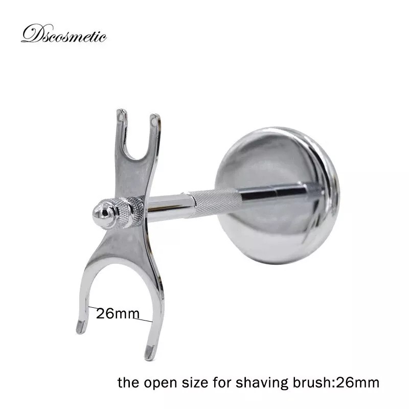 High quality Metal chrome plated stand can hold a shaving brush and razor, get your shaving items organized and clear.