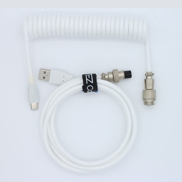 White Coiled Cable for Mechanical Keyboards (5 ft, USB-C Nickel GX-12, White)