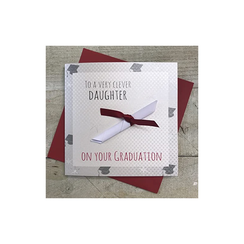WHITE COTTON CARDS To A Very Clever Daughter, Handmade Graduation Card (Scroll)