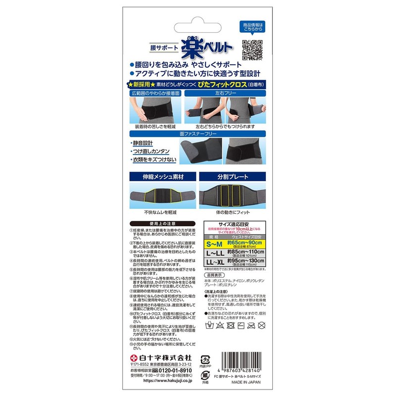 White Cross FC Waist Support Easy Belt, S-M, Unisex, Supporter, Elastic Mesh Material, Breathable, Velcro Free, Left and Right Free