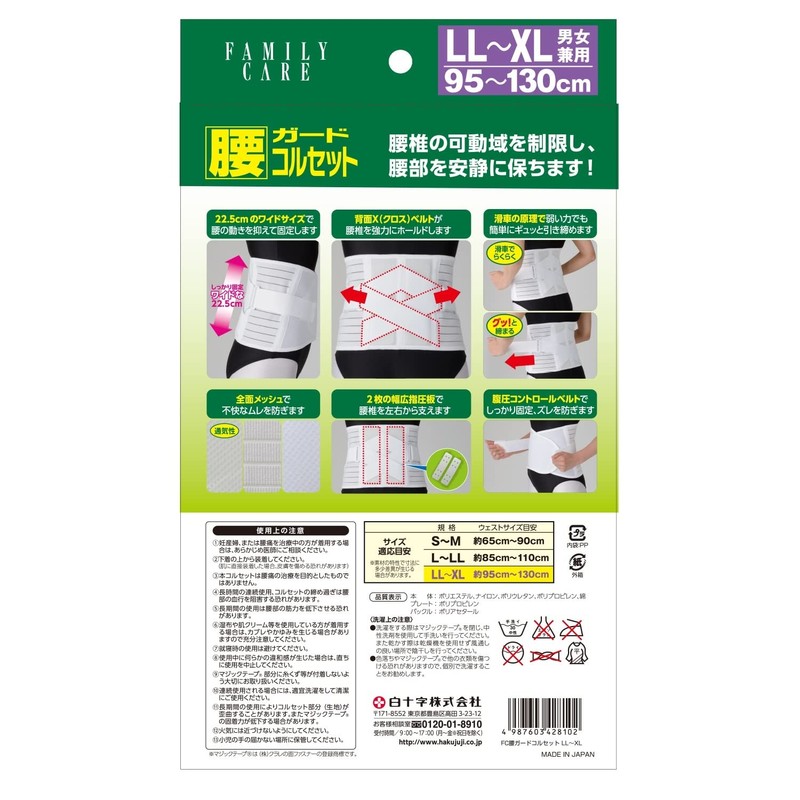 White Cross Waist Guard Corset, LL - XL, 1 Piece, Unisex, Wide, Full Mesh
