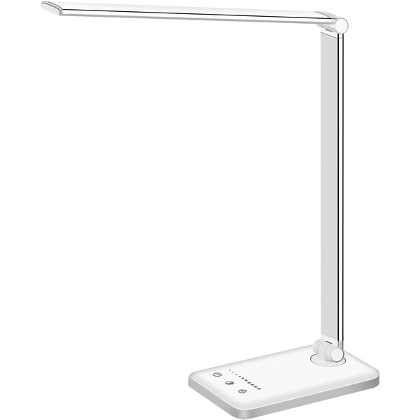White crown White crown LED Desk Lamp Dimmable Table Lamp Reading Lamp with USB Charging Port, 5 Lighting Modes, Sensitive Control, 30/60 Minutes Timer (White, First-Generation)