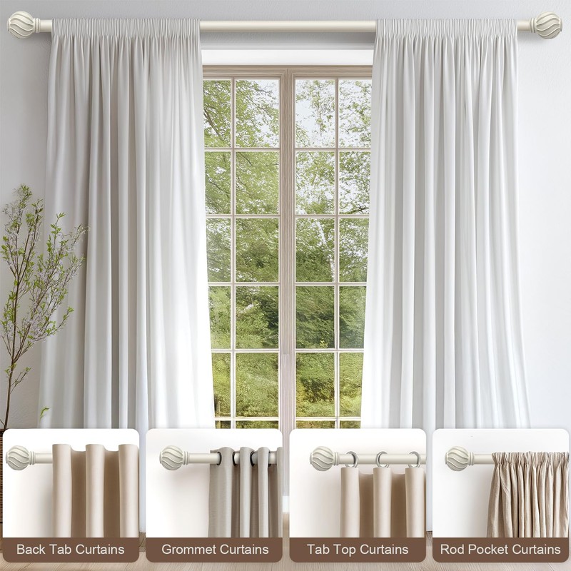 - 【Easy Installation】Our curtain rods come with all the hardware and user manual for easy and quick installation.We also have install video on amazon to help you spend less time installing and more time enjoying your beautiful curtain rod.During the installation process, please let the fixing rod and threads align correctly, then twist the installation slowly, this will save you more installation time and most importantly allow you to install it perfectly.