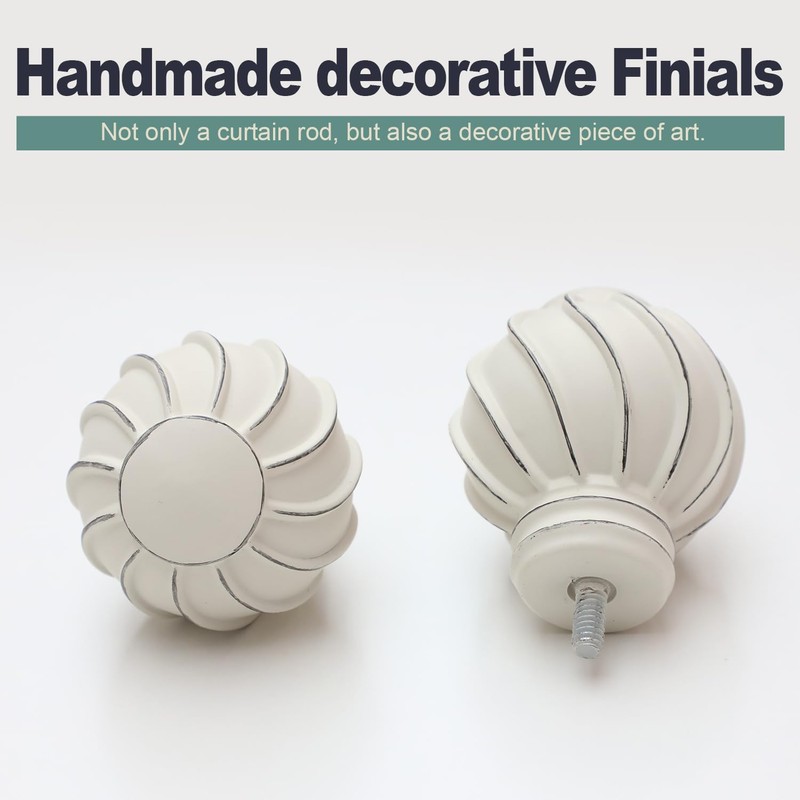 White Curtain Rods for Windows 28 to 48 Inches Adjustable Length Heavy Duty 7/8" Diameter Window Curtain Rod with Decorative Finials for Outdoor Farmhouse Bedroom Kitchen Living Room