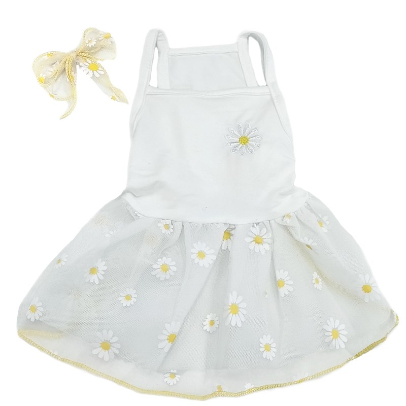 White Daisy Dog Cat Dress for Small Dogs Girl Cute Dog Princess Dresses Puppy Tutu Skirt Chihuahua Teddy Pomeranian Sundress Birthday Holiday Clothes Cat Pet Wedding Outfit