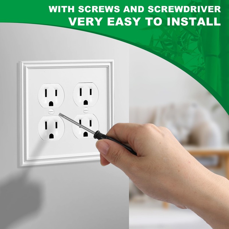 - New Natural Material: Our double outlet covers wall plate covers are made of natural material, won’t absorb stains, no odor. It’s pretty safe and your families’ healthy will be guaranteed. Say no to traditional plastic wall plate covers, our outlet covers would make a great replacement